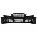 Оборудвана с централна и странични решетки, отвори за парктроник сензори, отвори за система за измиване на фаровете и модули за халогените.